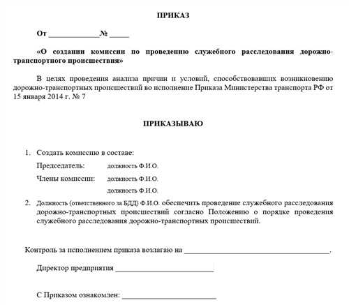Назначение акта о ДТП на предприятии
